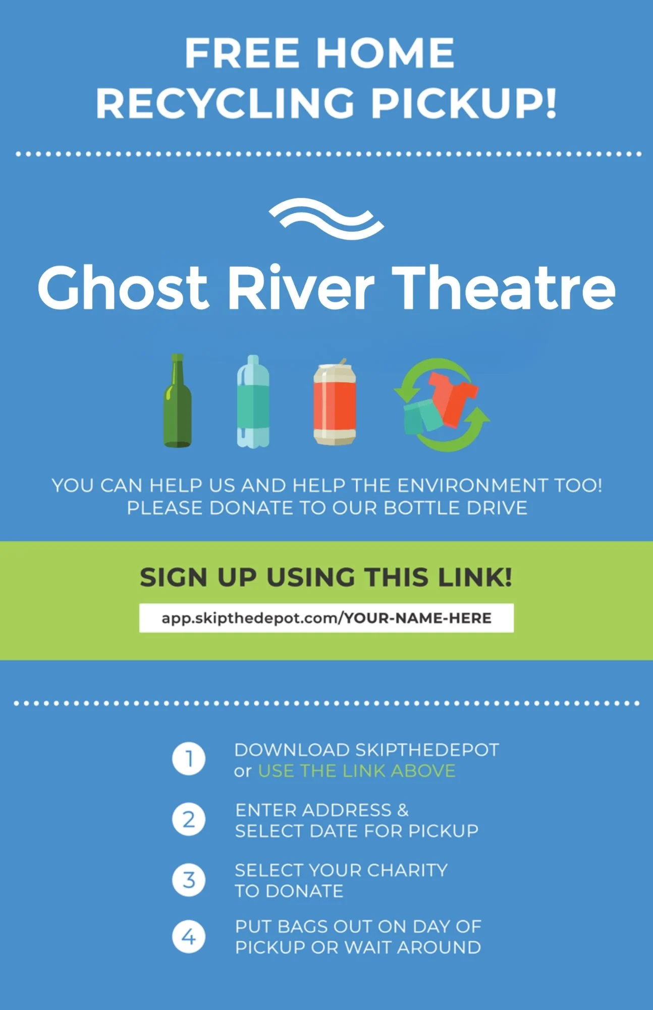 Prefer to donate your recycling proceeds? Sign up with Skip the Depot to have your bottles picked up and support Ghost River Theatre effortlessly!
