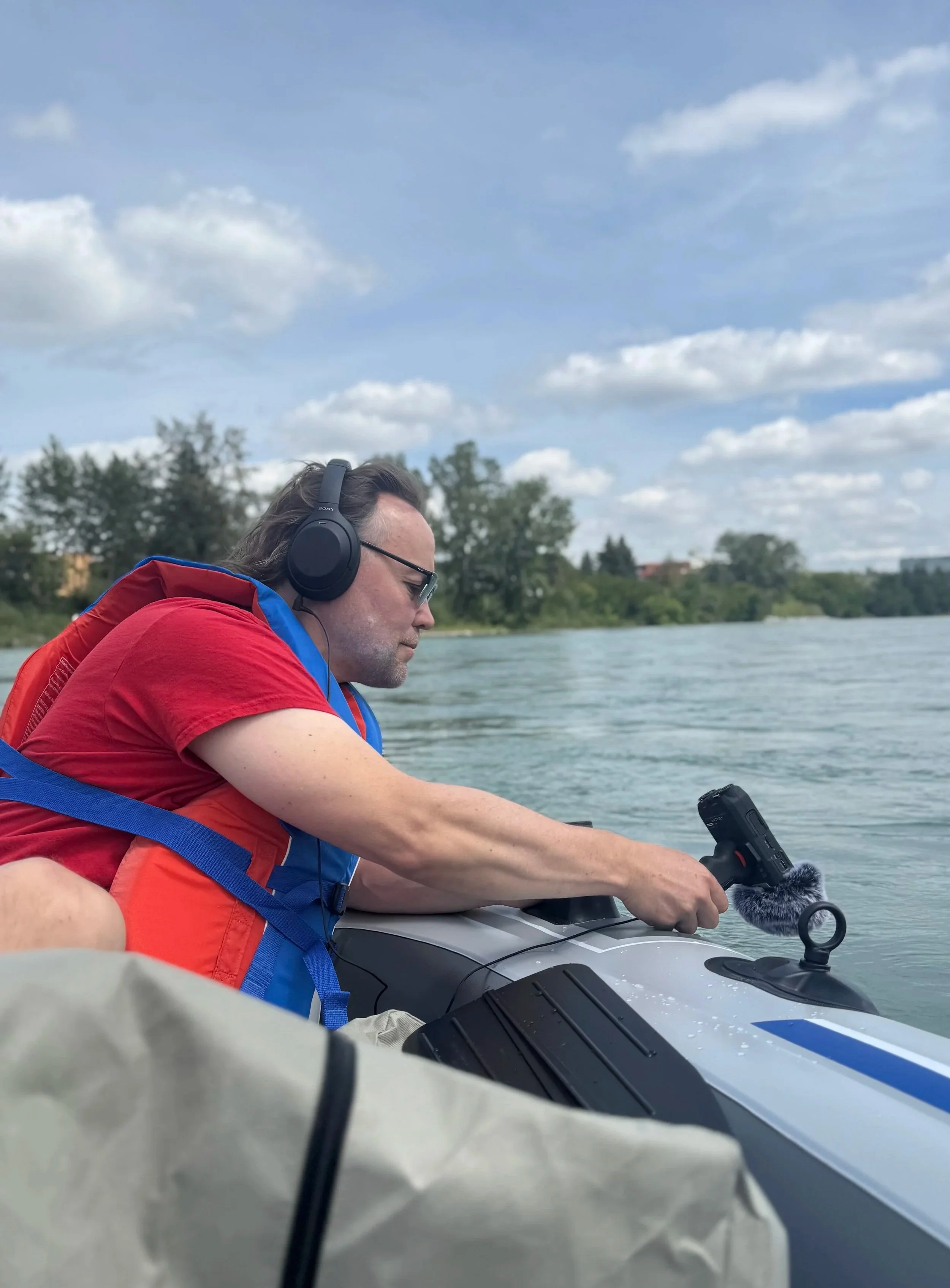 I imagine the sound journey of FLOAT starting in a hyper-realistic context of floating down the Bow River and then, perhaps, seamlessly drifting into a shopping mall, a Pow-Wow Round Dance, a corporate boardroom, an ice-cream shop, etc... and everywhere the audience floats you hear fragments - of conversations, music, laughter, warnings, secrets - subtly accumulating the feeling of what it means to be alive right now, with all its contradictions, beauty, longing, worry, restlessness, politics, and mundanity.”